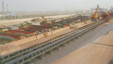 一:產(chǎn)品應(yīng)用范圍 廣泛應(yīng)用于冶金、煤炭、水電、機(jī)電、化工、交通等部門,輸送散狀物料或成件物品。根據(jù)輸送線路要求,可以單獨(dú)一臺,也可以多臺或與其它輸送機(jī)組成系統(tǒng)作水平或傾斜輸送。 輸送機(jī)一般環(huán)境溫度+45℃到-10℃范圍內(nèi)作用,對于有防塵、防爆、防腐蝕要求的場合需要輸送帶可逆運(yùn)行輸送時,應(yīng)另采取措施。 二、技術(shù)特征和主要參數(shù): 本機(jī)可輸送堆積比重1.0-2.5噸/米3的各種散狀物品,本廠生產(chǎn)帶寬500、650、880、1000等規(guī)格,傳動功率從1.5KW到185KW。帶速有0.8、1.0、1.25、1.65、2、0米/秒五種。大輸送量見下表。 三、結(jié)構(gòu)概述: 總機(jī)布置基本情況如附圖。主要結(jié)構(gòu)有: 1、驅(qū)動部分。系由裝置在型鋼焊成的底座上的電動機(jī)→高速聯(lián)軸器→減速器→減速聯(lián)軸組成。根據(jù)布置要求:驅(qū)動裝置設(shè)有左裝和右裝二種,另外,本廠配有功率1.5KW到185KW,速度0.80、1.0、1.25的油冷式電動滾筒。 2、滾動部分:分傳動滾筒和改向滾筒兩大類。 3、托輥部分:分槽形、平形、調(diào)心和緩沖托輥等。 4、清掃部分:分彈簧清掃器和空段清掃器 5、卸料部分:分固定犁式和卸料器和電動卸料車。 6、制動部分:有帶式逆止器和滾柱逆止器兩種。 7、附件:有罩殼、導(dǎo)料槽、漏斗等。